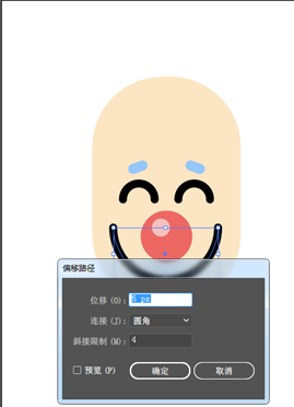 选择大嘴,对象>扩展外观将其转曲,然后对象>路径>偏移路径设置位移5px。其他保持默认设置,然后将其颜色设置为红色