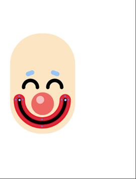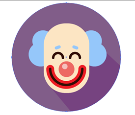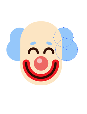我们将小丑的所有对象细微的调整一下,接下来我们应该画小丑的头发了,画一个35x35px和40x40px的圆,保持两圆有互补的地方放在头部下面,然后用shift加alt拖动到另一侧的头部。