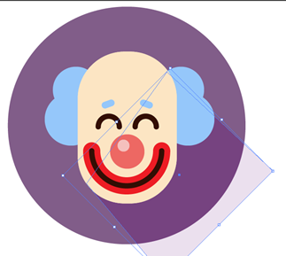 将矩形旋转45度,调整到小丑头发和脸部适合的位置边缘。可以用直接选择工具进行。