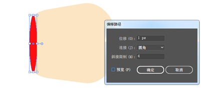 我们选择需要对大炮的口进行封装,让他看起来很厉害的样子。首先画一个椭圆,确保他的高度适合大炮的边缘,然后对象>路径>偏移路径,位移设置为1px,其他默认就好。然后填充里面的为紫色,外面的为红色。