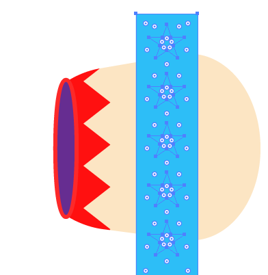 对象>扩展外观后移动到大炮的前部,选择大炮和曲折的条纹,使用路径查找器切掉不要的部分。然后在调整一下排列顺序。