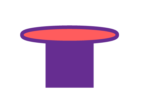 我们可以利用绘制大炮口同样的方法来绘制帽子口。 新建一个103x13px的椭圆,然后应用路径偏移设置4px的位移。在取矩形工具画一个54x57px的形状,应用紫色。然后与帽子口对齐适当位置。