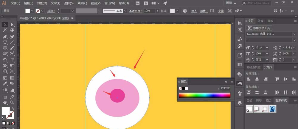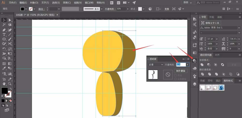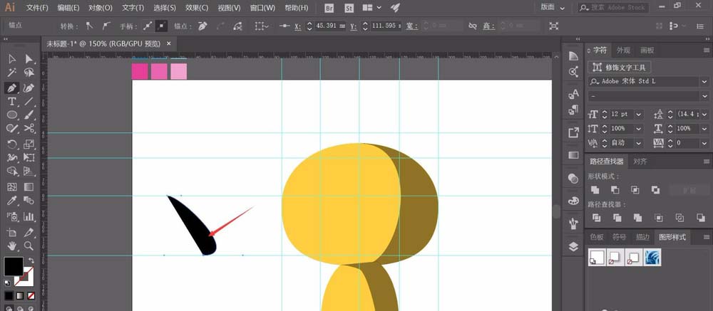 6、利用AI的椭圆工具,或者钢笔工具,自行绘制两个圆滑的图案,来充当卡通人物的头部和身体,之后我们利用钢笔工具,将半边涂黑,再利用“路径查找器”将黑色区域保证在合适的位置作为阴影。