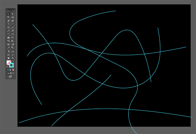清除工具栏中的填充颜色,然后设置一个充满活力的笔触。在画板的一系列方向绘制随机流线。铅笔的平滑选项将消除初始路径中的任何扭结。