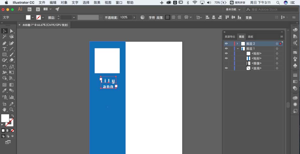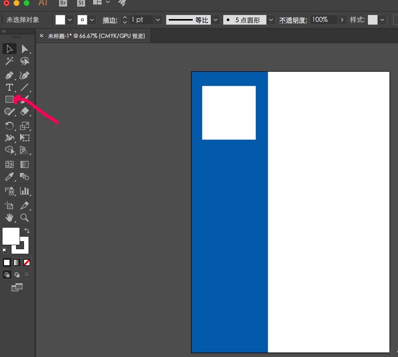 用矩形工具新建一个长方形,这里用了商务蓝,其他颜色均可,这样就将简历分成两个大的部分。再次使用矩形在蓝色的长方形上建立一个白色的正方形,用来做照片的背景框。