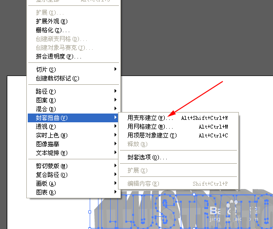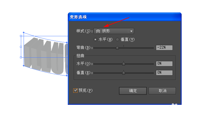 4、不要扩展,选定它,继续执行:封套扭曲——》变形建立,并设置参数