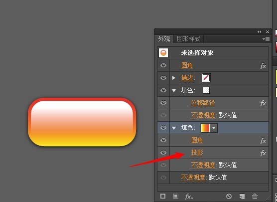 8、鼠标点击初始填色,为其添加投影效果,这样完成一个按钮