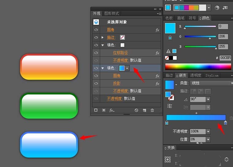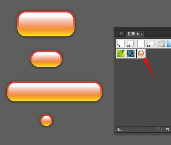 9、选定刚才完成的按钮,直接拉入图形样式面板,使其成为一个可以重复利用的元件