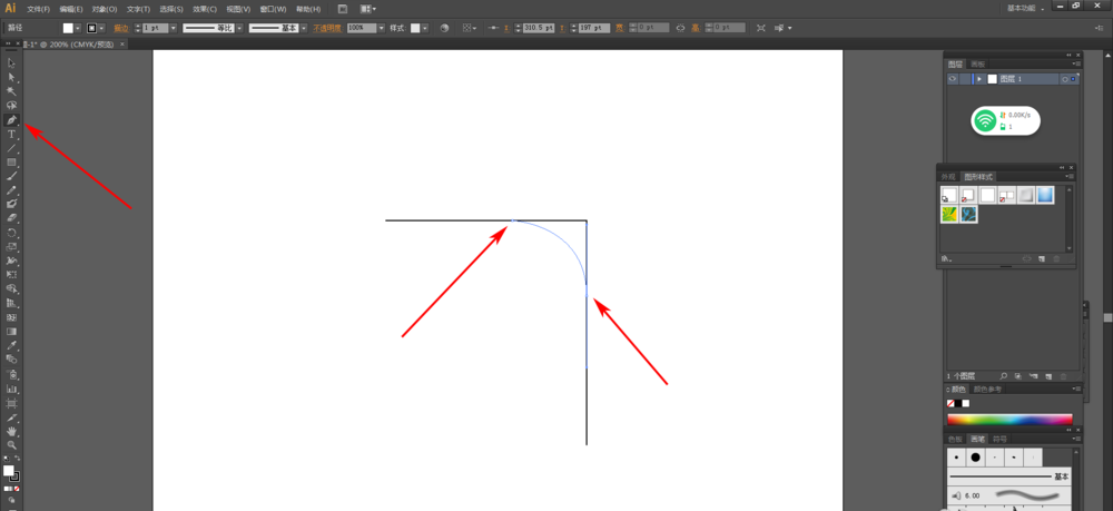 1、用钢笔工具画出一个三点直角,越简洁越好。