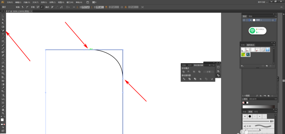 4、用直接选择工具选中直角的顶点然后delete删除。