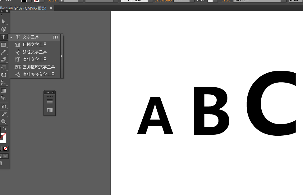 1、在Ai软件中,新建一个800*800的文档,选择文字工具,写上大小不同的字母,如图所示