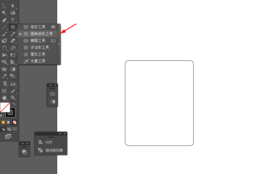 1、在Ai软件中,新建一个800*800的文档,选择圆角矩形工具,画一个圆角矩形图形,如图所示
