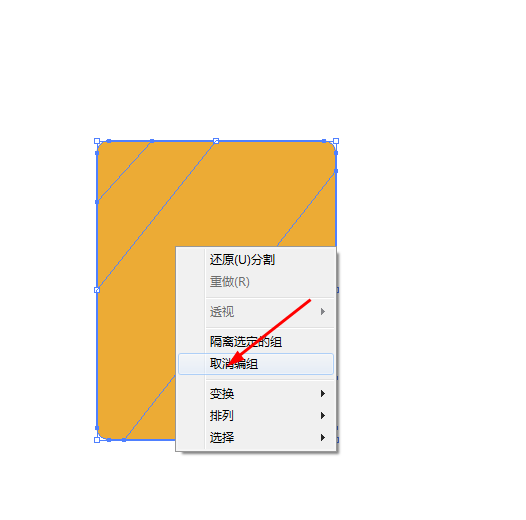 3、接着点击图形右键取消编组,给分割后的图形添加渐变颜色,如图所示