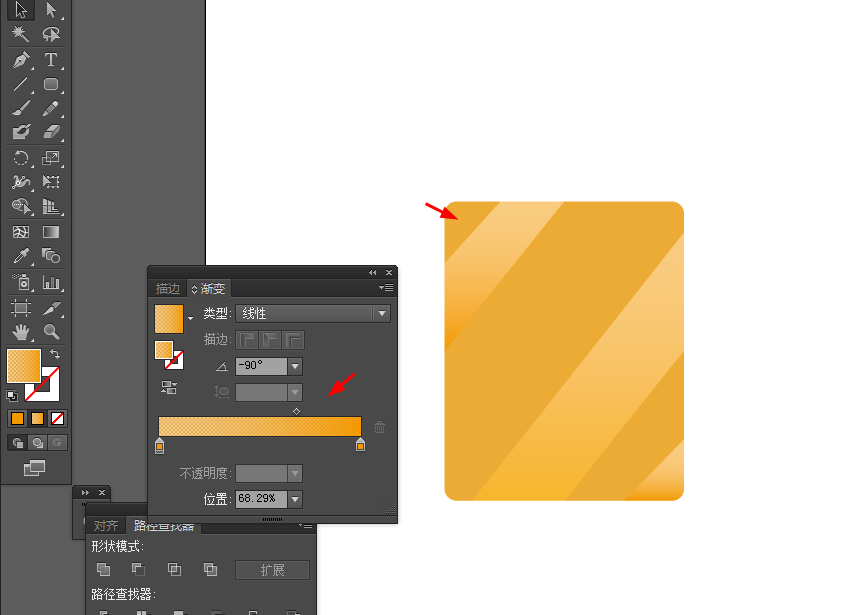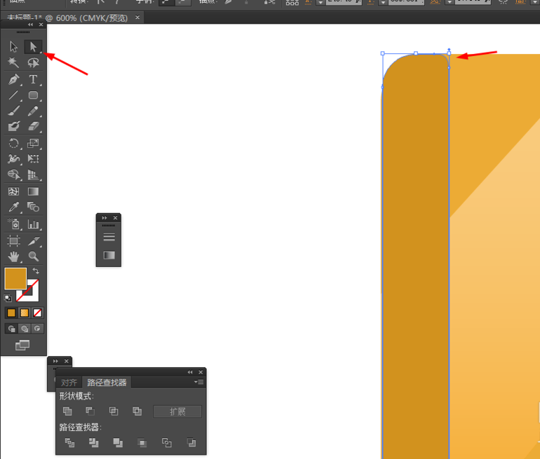 5、选择直接选择工具,把圆角矩形图形的另外一端的锚点进行调整一下,如图所示