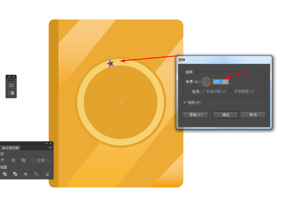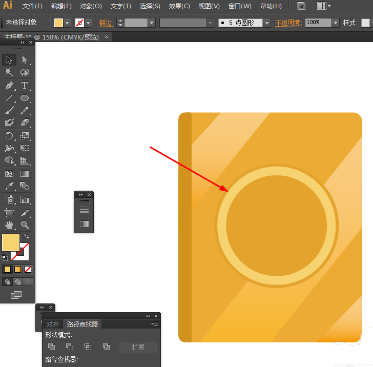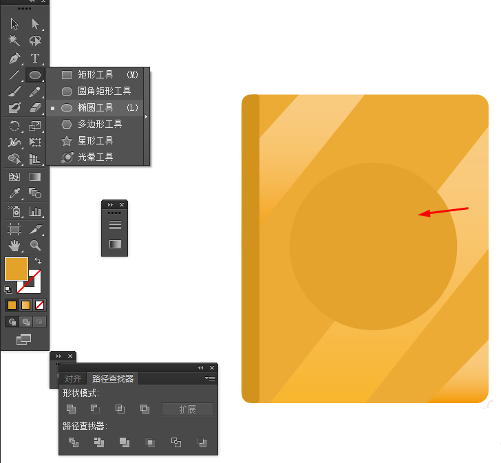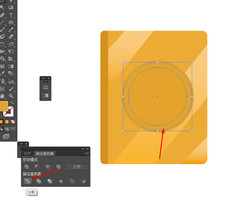 8、选中缩放后的两个圆形到窗口—路径查找器—点击分割,再点击圆形右键取消编组,并填充颜色,如图所示