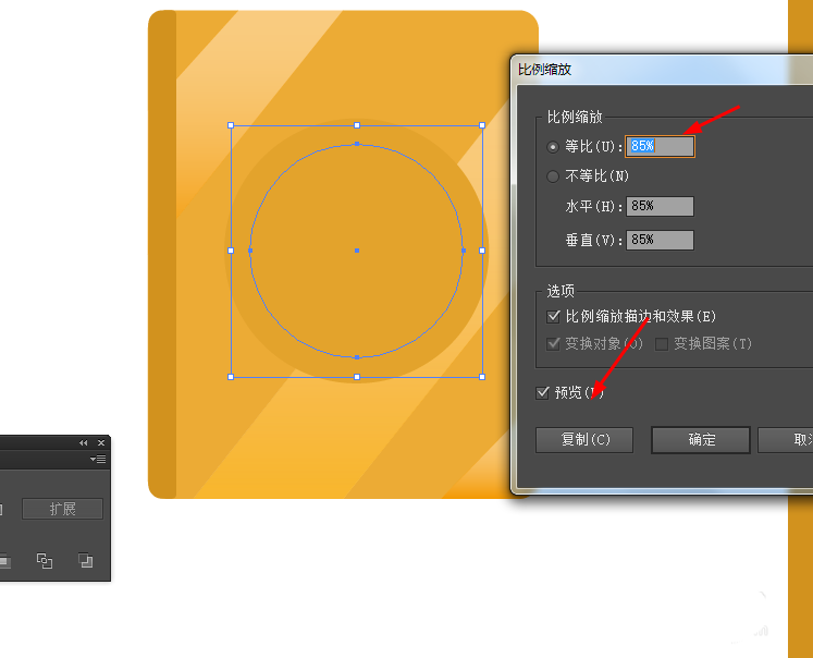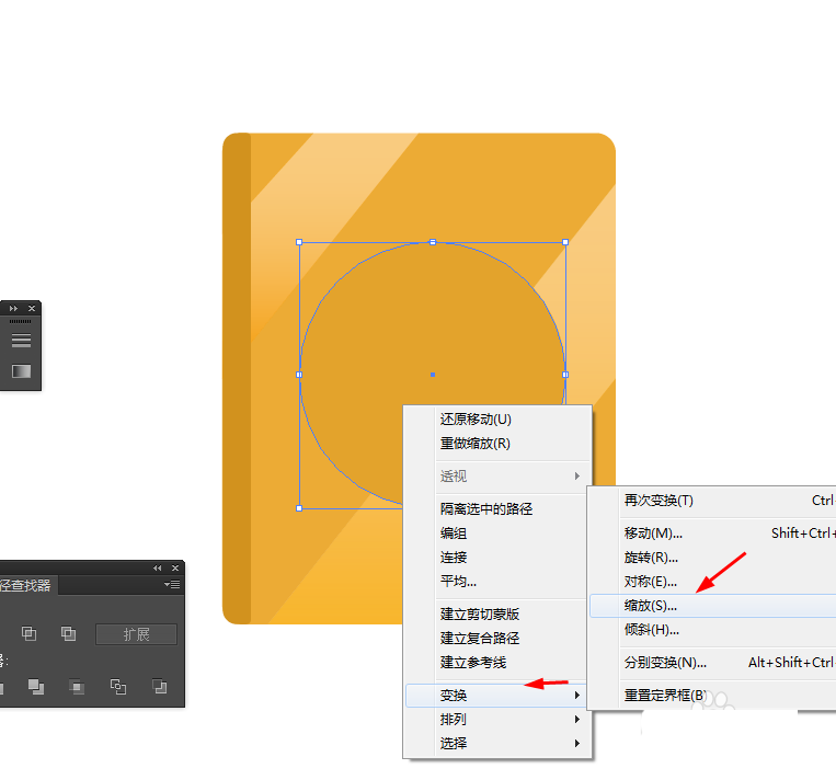 7、点击圆形右键选择变换—缩放两次,如图所示