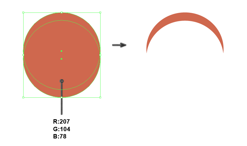 让我们绘制一个发带。使用椭圆工具(L)创建两个圆(R:207 G:104 B:78),使它们重叠,然后减去顶层。