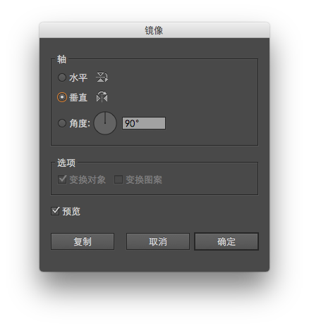 现在我们来绘制耳朵。创建另一个小椭圆形,并向左旋转。将此耳朵放在头部的左侧。在选择左耳时,右键单击鼠标,然后选择 变换>对称,输入下图中的参数,然后复制。将新耳朵向右移动到合适位置。