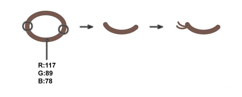 创建一个椭圆形,没有填充,描边颜色(R:81 G:80 B:75)。创建以下所示的形状,使用直接选择工具(A)移动锚点的手柄。使用直线段工具(\)在此形状的左侧添加线段。