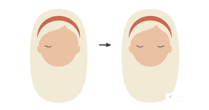 绘制梦幻的轻松的眼睛。先创建一个椭圆,再使用剪刀工具(C),单击椭圆的左右两侧,然后删除椭圆的上部。这时候应该是一个弧形。 接下来绘制睫毛,复制这个弧形,通过减少笔划粗细得到第一根睫毛,并将其移动到较大弧形的左角,然后制作这个小弧形的另一个副本。我们浪漫的眼睛就绘制好了。