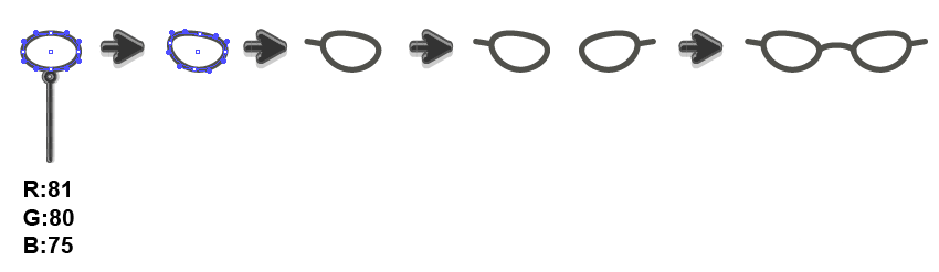 然后创建眼镜的右侧部分,正如我们在前面的步骤在做:单击鼠标右键,变换>对称。选择轴垂直,角度90度,然后复制。将此副本移动到右侧。使用弧形工具制作眼镜的中间部分,并将镜头连接在一起。一副优雅的眼镜就绘制好了。你可以改变框架的形状,创造一个你喜欢的独特的眼镜。