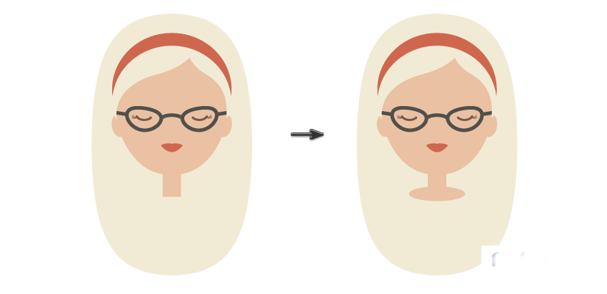 让我们从颈部和肩膀开始绘制。使用矩形工具(M)创建一个矩形并将其放到头部下面。然后,使用椭圆工具(L)创建一个椭圆,并将其放到颈部下面。