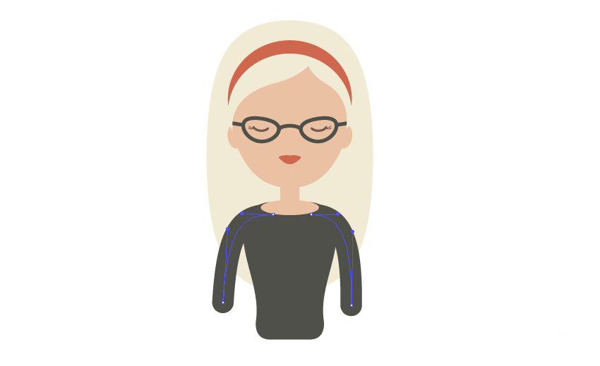 我们将从一个弧开始绘制手臂。首先,删除填充颜色,并设置与主体颜色类似的描边颜色。现在使用弧形工具来绘制女人的手臂,移动锚点的手柄以获得所需的结果。