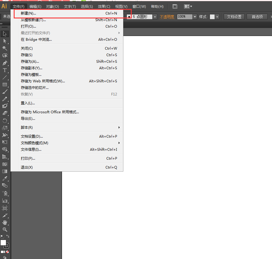 双击打开Illustrator CS6软件,点击标题栏中的文件。在弹出的子菜单中点击“新建”或者快捷键【ctrl+n】选择新建文件。然后设置文件大小即可。(如下图)