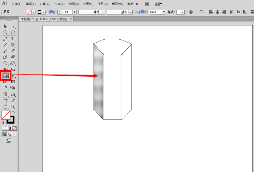 2、使用“形状生成器工具”,单击一下六棱柱的右侧一面