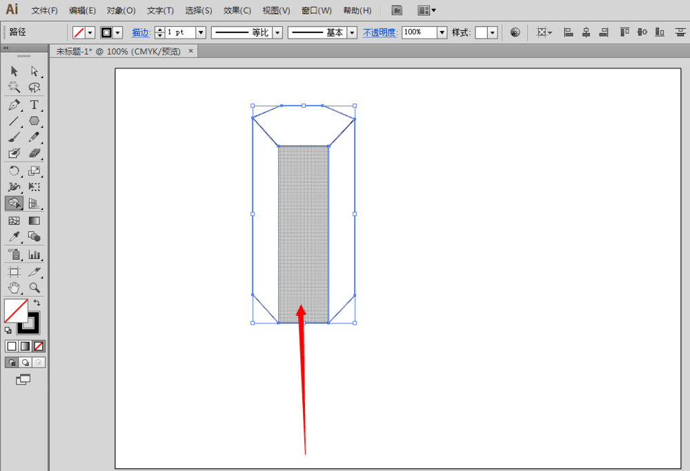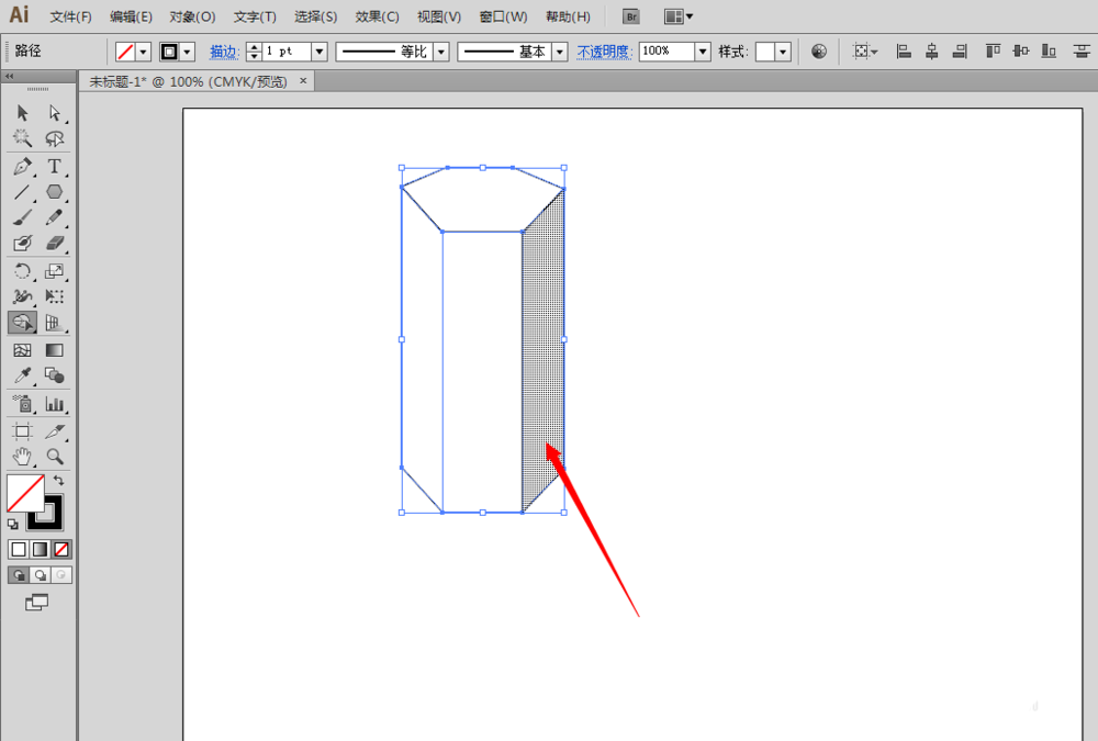 4、使用“形状生成器工具”,单击一下六棱柱的正面一面