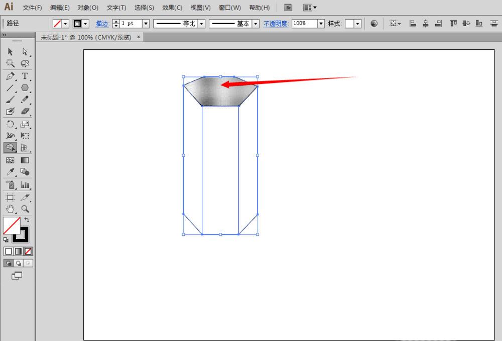 3、使用“形状生成器工具”,单击一下六棱柱的上面一面