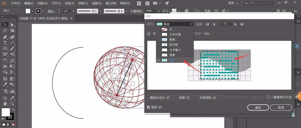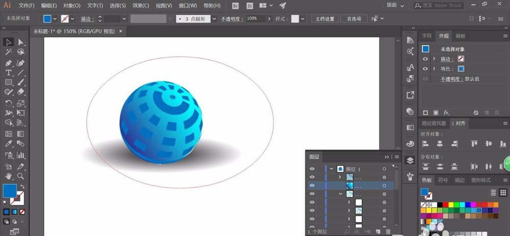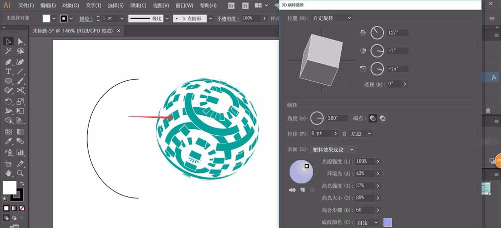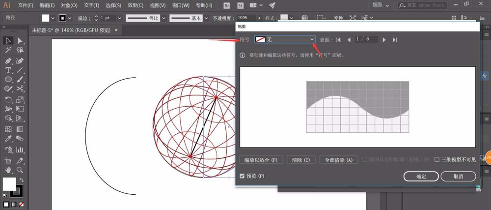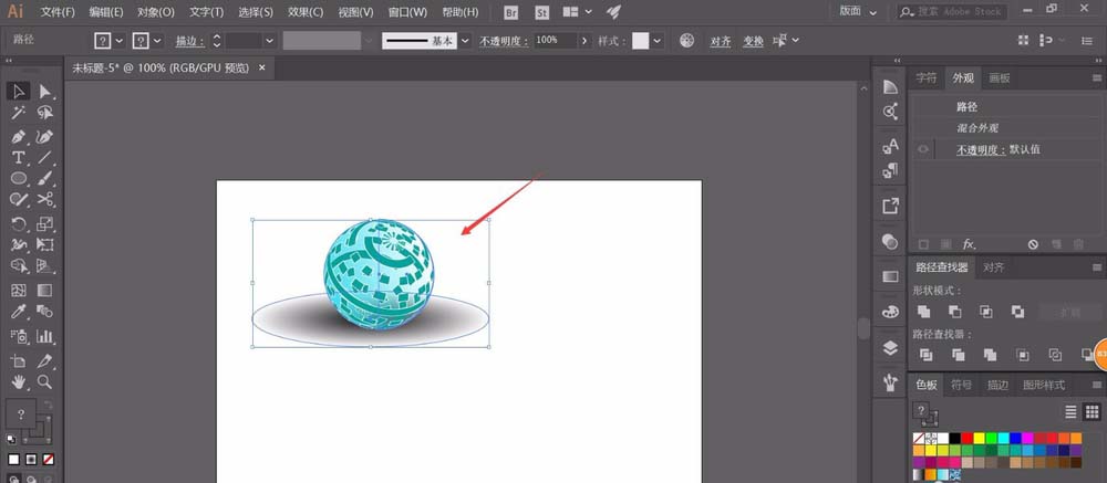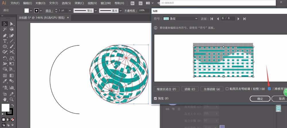 7、勾选“三维模型不可见”之后,即可看到,AI illustrator的绘图板上,我们绘制的3D贴图图形已经出现,下面我们对其进行简单的加工处理。