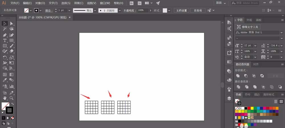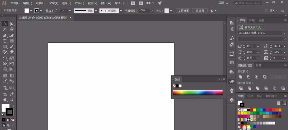 2、等待Adobe illustrator加载完成后,我们就会进入到Adobe illustrator的绘图页面,在工作区中心会有我们新建的空白画布,下面我们开始基础绘制。