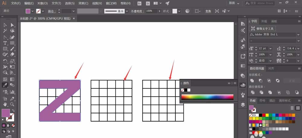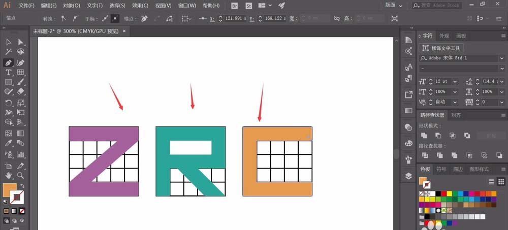 6、随后,我们直接选择Adobe illustrator的钢笔工具,利用我们绘制的网格,进行字母轮廓的绘制,在绘制时,尽量保证字母的美观。