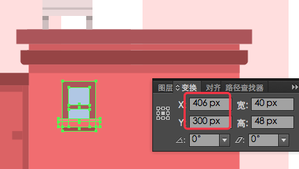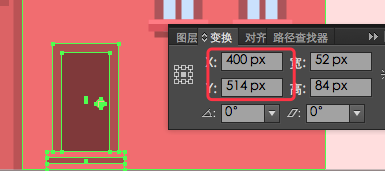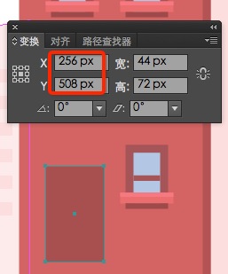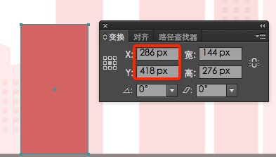 1.确保你在远景建筑的图层,使用矩形工具(M)画一个粉红色(#FFEBEB)132 x 194px矩形,变换面板定位的坐标数值:(X:156px;Y:459px)