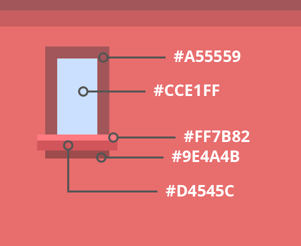要完成我们的小窗口,只需在窗台下面添加一个小阴影,通过绘制一个32 x 4px的对象,并使用#9E4A4B着色。