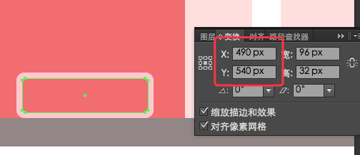 7.移动到自行车支架,抓住圆角矩形工具,创建一个92 x 28p圆角2px(#FCC8D1),用Shift X翻转它的填充到描边,然后将它的描边改为4px。 使用以下值定位: X:490px Y:540px