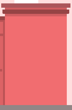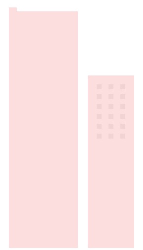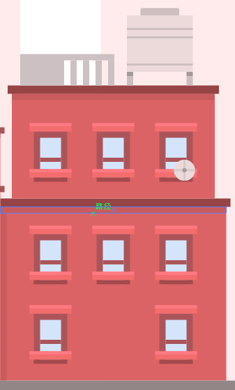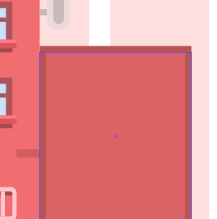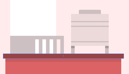 1.画第三个建筑物,创建一个较高的140 x 480px的矩形,并将其放置在距离第二个建筑物约78px处。其颜色为#FFEBEB,然后在左上角添加一个相同颜色的16 x 8px矩形。