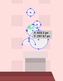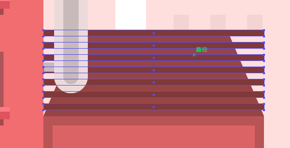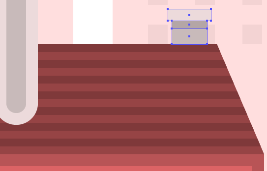 轨道的最后一块将是一个更宽的34 x 4px矩形(#fcc8d1),放置到位于先前创建的对象的顶部。 颜色#FCC8D1中的所有元素编组,以便他们不会丢失。