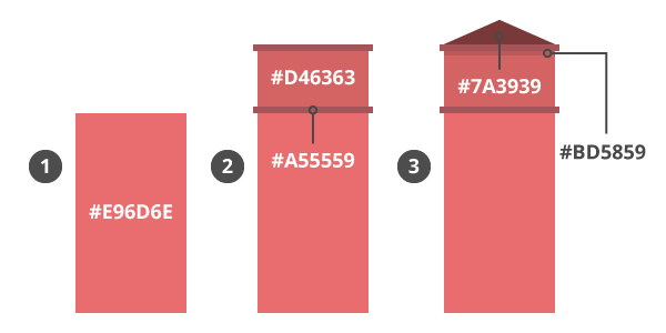 2.添加一个108 x 6px的部分(#A55559),然后是一个100 x 50px(#D46363)高,一个辅助108 x 6px,然后创建一个三角形,如roof(#7A3939)宽度为100px 和高度22px。