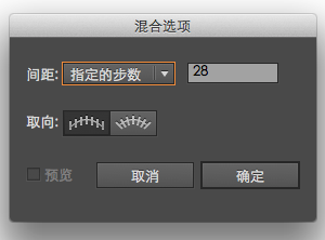 首先选择两行,转到对象>混合>混合选项,并更改间距到指定的步骤,在值字段中输入28 ,然后去对象>混合>使实际创建混合。