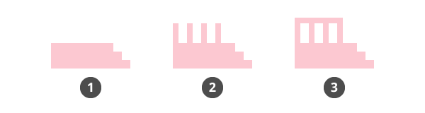 从基础开始,创建三个矩形(#fcc8d1),其值如下堆叠: