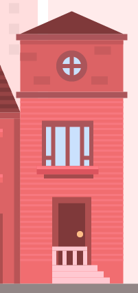 1.移动到第四个房子的图层,创建一个100 x 180px(#E96D6E)矩形,将其完全放置在之前创建的房子的右侧。