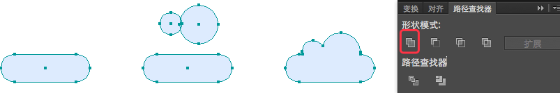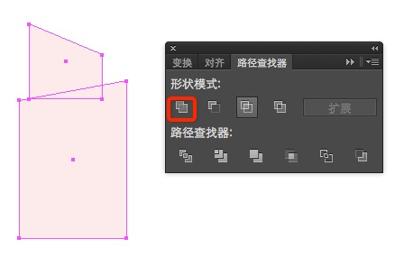 选中这2个对象,使用路径查找器的联集将它们组合成一个形状。