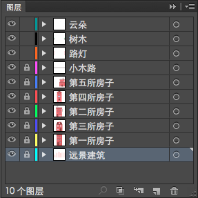 第三步: 制作画面远景建筑