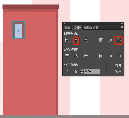 8.最后,还有门要创建,首先复制第一个房子的门,去掉门槛,并且调整两个矩形的宽度和高度,使门与窗户同宽,与下面的窗户同高;