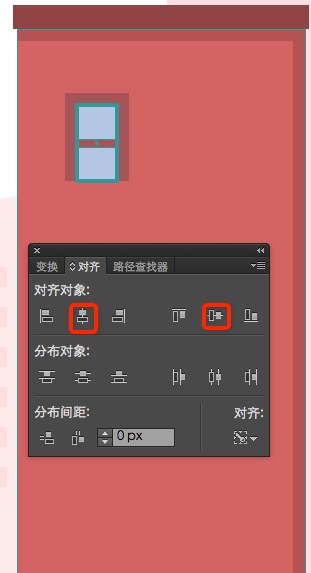 再创建一个20 x 4px的矩形(#A55559),以及垂直和水平对齐,为玻璃添加一个中间分隔线。