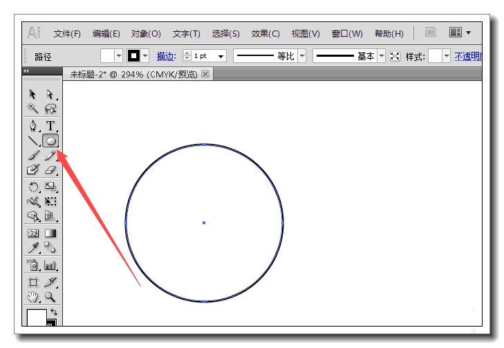 1、打开AI程序,新建一个画板,单击椭圆工具,按住shift键,画一个正圆。