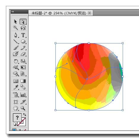 5、利用直接选择工具,选中一个锚点,单击色板上的某一种颜色,锚点周围就会产生渐变色。同样的在某一区域内单击一下,再单击色板颜色,该区域就会显示该种颜色的渐变色。