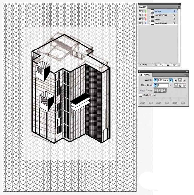 1、等距网格是用于在立体图形对象的有用工具。它的垂直线加上在60℃至两边线形成,所有的会议在公共点形成的等边三角形的网。我们提供了一个在项目文件-一个名为Illustrator文档Grid.ai。